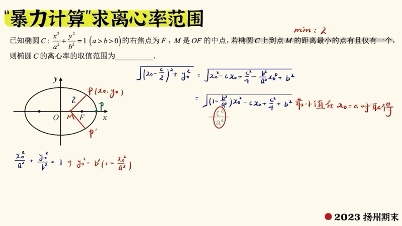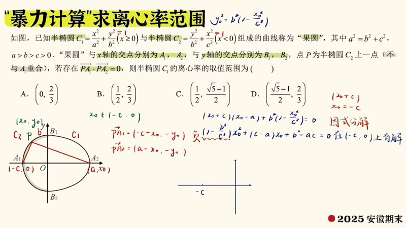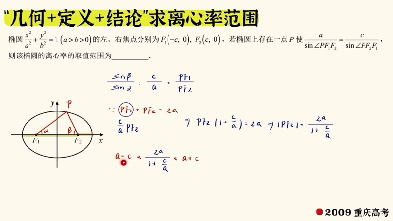 - 求范围时忘记约束条件:\(0 < e < 1\) 是椭圆的天然约束。求出的 \(e\) 值必须在此范围内