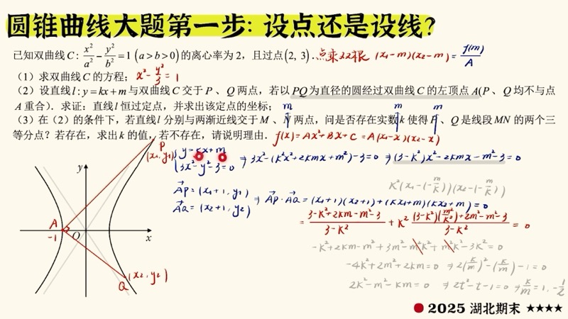 做解析几何大题时,联立方程后必须验证 \(\Delta > 0\)!很多同学直接用韦达定理而忘记检查判别式,这是常见失分点。