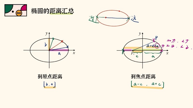 | 3 | 焦距范围 | \([a-c, a+c]\) | 椭圆 |
